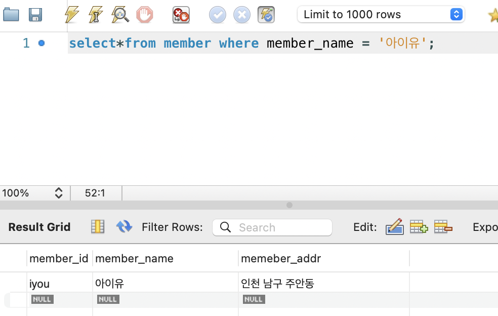 select * from member WHERE member_name = '아이유';